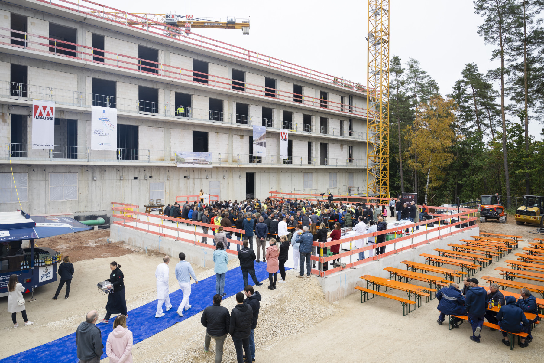 Nach dem Beginn der Erdarbeiten im Frühjahr ist die Baugrube des Großprojekts auf 20 Hektar Land weitgehend ausgehoben. Aktuell werden Stützwände mit Vernagelung und Spritzbeton hergestellt. Der Spezialtiefbau setzt insgesamt 756 Bohrpfähle. Parallel läuft das Vergabeverfahren für die Rohbauleistungen, das noch in diesem Jahr abgeschlossen werden soll, sodass Anfang 2026 die Rohbauarbeiten beginnen können. Vorgesehen ist die Inbetriebnahme von EVZ und MUZ mit Strahlentherapie in der zweiten Jahreshälfte 2028, das Klinikgebäude soll im Jahr 2030 eröffnet werden. Das neue Ortenau Klinikum in Offenburg wird mit effizienteren Strukturen als Maximalversorger weiterentwickelt. Rund 700 Millionen Euro wird der neu entstehende Klinikcampus kosten. Bestehende Spitzenzentren erhalten optimale räumliche und technische Voraussetzungen. Es wird eine hochmoderne Zentrale Notaufnahme entstehen. Auch im Zentral-OP setzt das Klinikum neue Maßstäbe: Ein spezieller OP-Saal ermöglicht intraoperative Strahlentherapie. Die Pflegebereiche sind als modulare Doppelstationen mit flexiblen Möglichkeiten zur Zusammenschaltung oder Abtrennung konzipiert. Im neuen Mutter-Kind-Zentrum mit Entbindungsbereich, Wöchnerinnenpflege, Kinderintensivmedizin und Kinderklinik-Pflegebereiche sowie Neonatologie sollen nach dem Zero-Separation-Concept geplante Couplet-Care-Zimmer die unmittelbare Nähe von der Mutter zum intensivpflichtigem Neugeborenen ermöglichen. Als zentrales Logistikzentrum spielt das Multi-User-Zentrum des künftigen Klinikverbunds eine zentrale Rolle und wird eine der größten Aufbereitungseinheiten für Medizinprodukte (AEMP) in Süddeutschland enthalten, eine moderne Zentralküche und eine leistungsfähige Zentralapotheke mit patientenindividueller Arzneimittelversorgung.