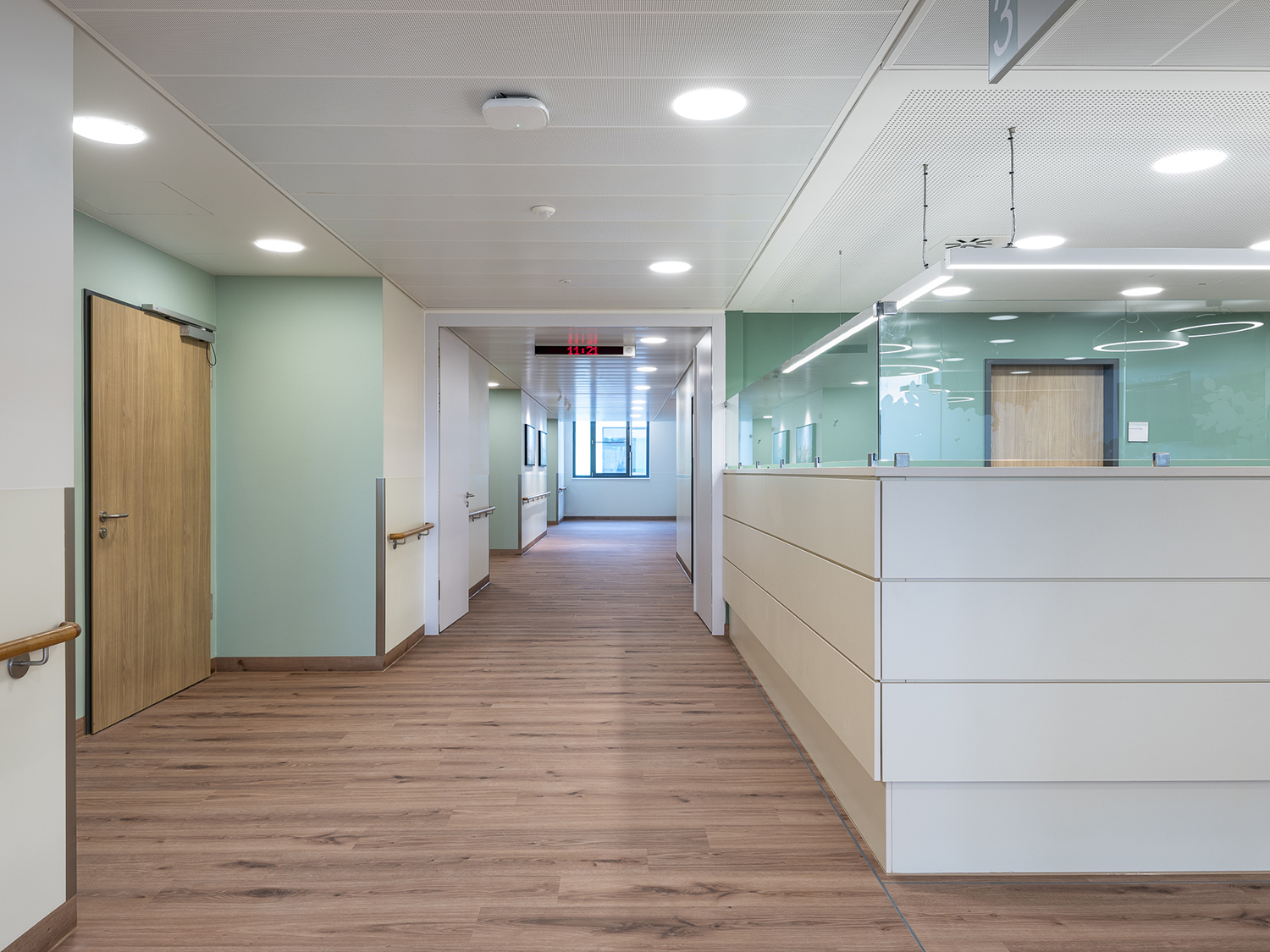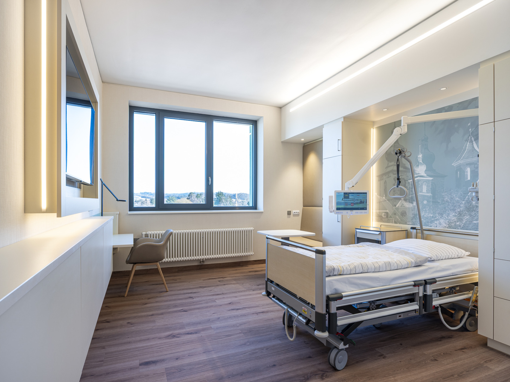 Durch den Neubau Klinikum Crailsheim ist in zwei Bauabschnitten eine vernetzte Klinikstruktur mit workfloworientierten Funktionsbereichen, optimierten Wegen und moderner Technik entstanden. Farb- und Lichtkonzepte der neuen Stationen sorgen für eine angenehme, freundliche Atmosphäre, damit sich die Patientinnen und Patienten sicher und geborgen fühlen. Vielfältige Ausblicke in die umgebende Landschaft und natürliche Belichtung erhöhen nicht nur die Attraktivität der Patientenbereiche sondern auch die Qualität der Arbeitsplätze im Klinikum.