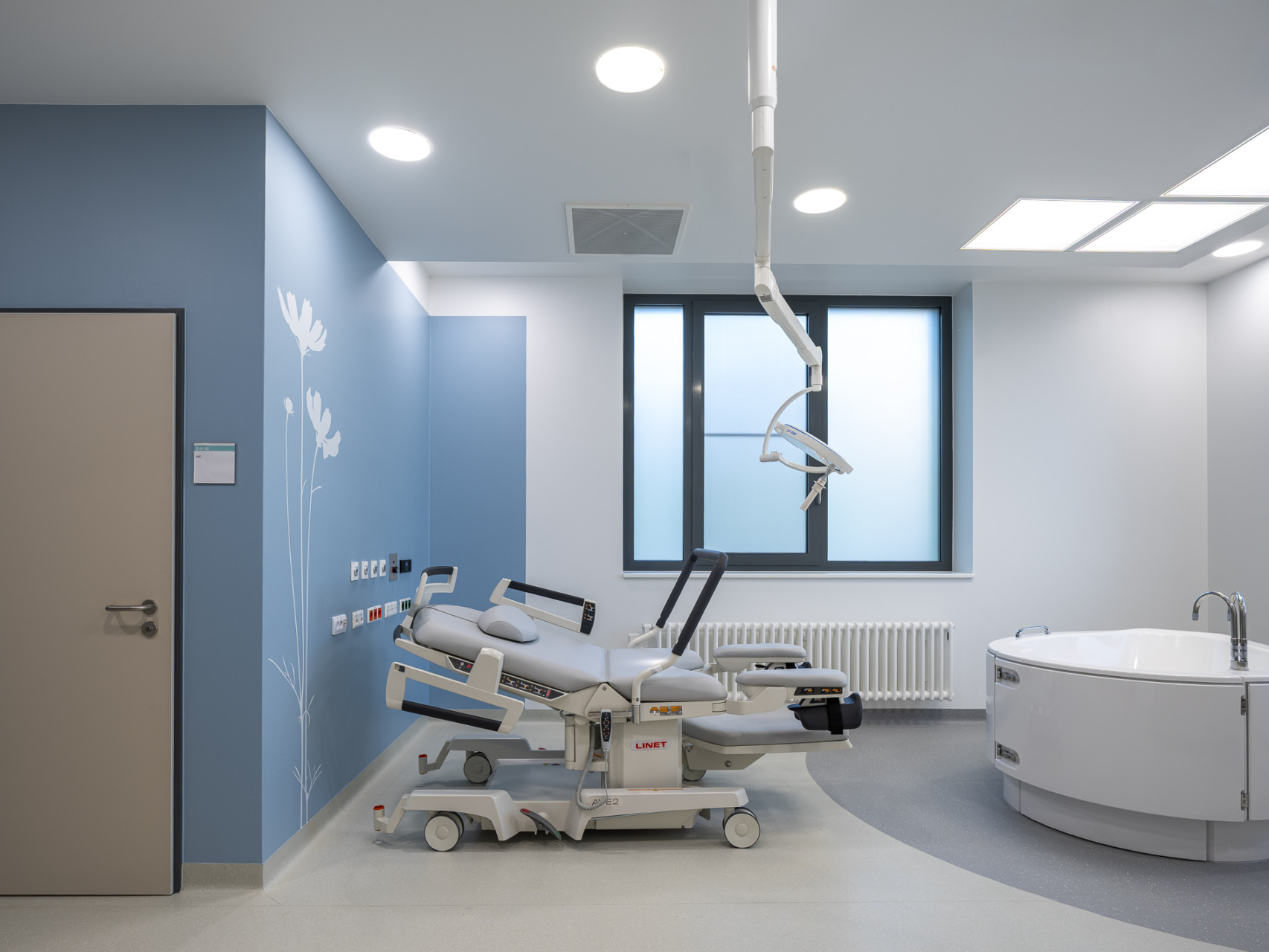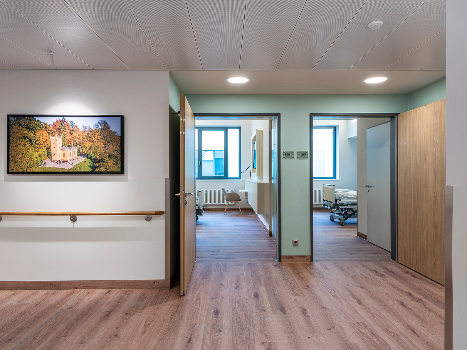 Der 2026 eingeweihte Erweiterungsbau BA2 mit Geburtshilfe, Geriatrie, Wahlleistungsstation und Hubschrauberlandeplatz auf dem Dach ist daran angebunden. Die Erweiterung im Osten nimmt die Fassadengestaltung und die Formensprache des bestehenden Gebäudes auf. Die innere Erschließung findet durch eine vertikale Erschließung über einen Aufzugsknoten mit Treppenhaus in Fortsetzung der Magistrale aus dem Bestand statt. Die zentrale Magistrale ist das Rückgrat des Gebäudes – an dessen Ende der Erweiterungsbau anschließt und die Magistrale weiter fortsetzt. Im Altbau befindliche Funktions‐ und Pflegebereiche wurden in den Neubau verlagert. Die Frauenklinik mit Gynäkologie und Geburtshilfe ist im 1. OG des 2. BA mit drei Kreißsälen und einem Kreißsaal mit integriertem Sectio-OP verortet. Alle Patientenzimmer auf der Entbindungsstation sind als Familienzimmer nutzbar. Darüber befindet sich die geriatrische Station mit zusätzlichen Betten und Patientenzimmern, zusätzlichen Therapieräumen und einem großen, offenen Aufenthaltsbereich, der Möglichkeit zur Begegnung bietet. Die Wahlleistungsstation befindet sich im 3. OG mit 18 Zimmern und Lounge im Südteil des Gebäudes. Der Klinikcampus bietet insgesamt 264 Betten, davon 82 Betten im Neubau Erweiterung Ost. Das Erdgeschoss des Erweiterungsbaus beinhaltet die gynäkologische Ambulanz, Arzt-, Bereitschafts- und Sozialdienste. Das Untergeschoss nimmt zu einem wesentlichen Teil die Gebäudetechnik auf sowie die zentralen Personalumkleiden mit 575 Umkleideschränken und die zentrale Wäscheversorgung für Mitarbeiterkleidung. Die zentrale Bettenaufbereitung mit reiner und unreiner Seite und Wäschelager schließt an diesen Bereich an.